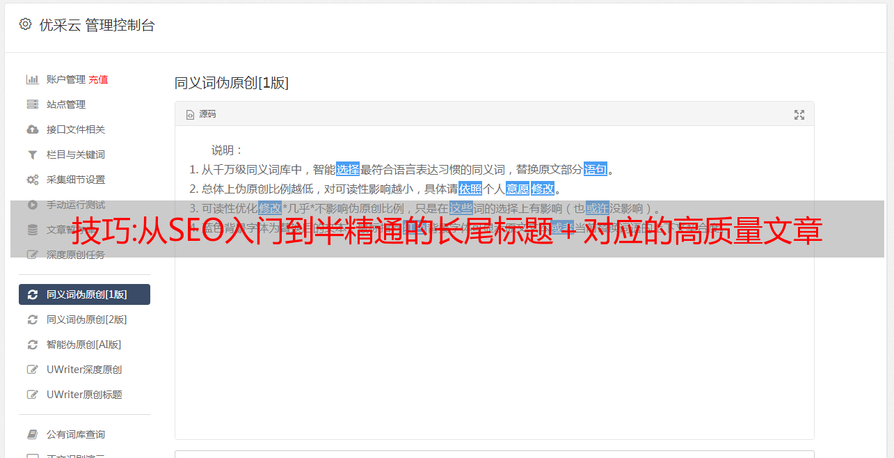 优采云 发布时间: 2022-09-23 15:18技巧:从SEO入门到半精通的长尾标题+对应的高质量文章
