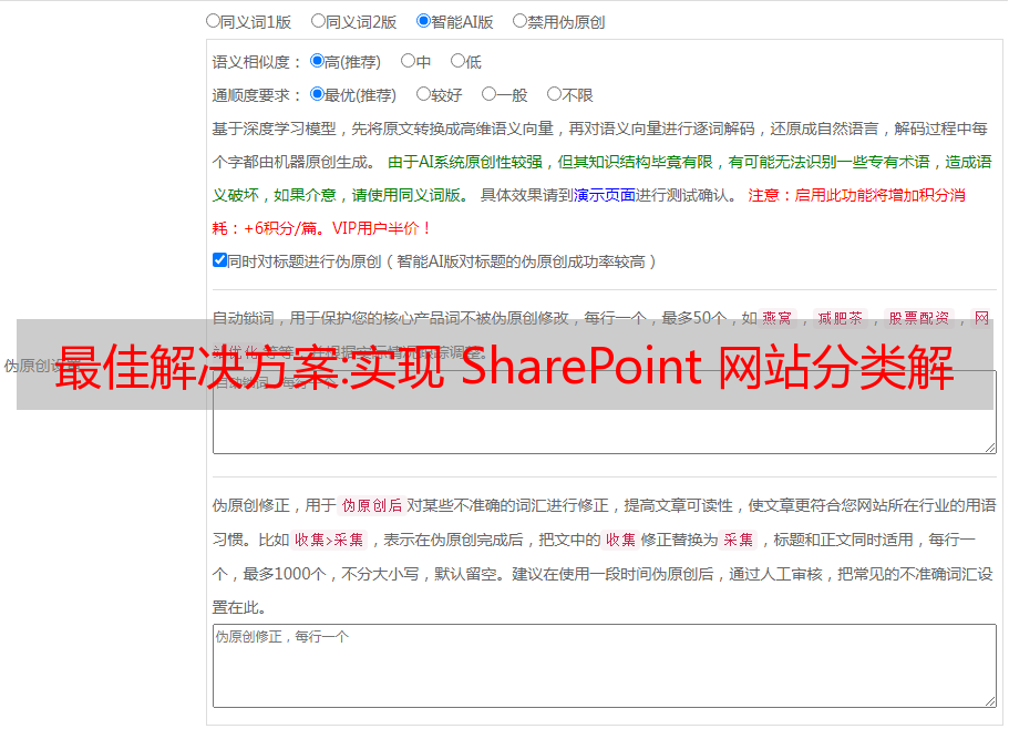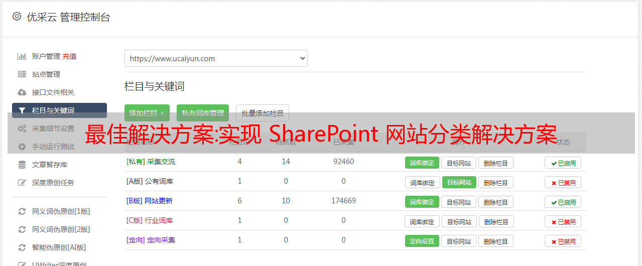 优采云 发布时间: 2022-09-24 05:11最佳解决方案:实现 SharePoint 网站分类解决方案