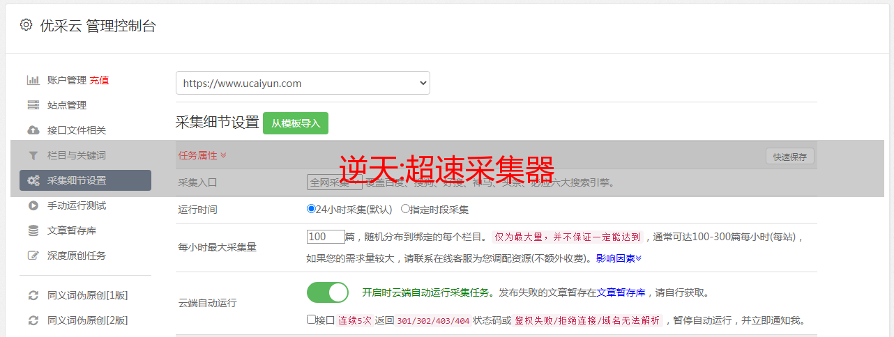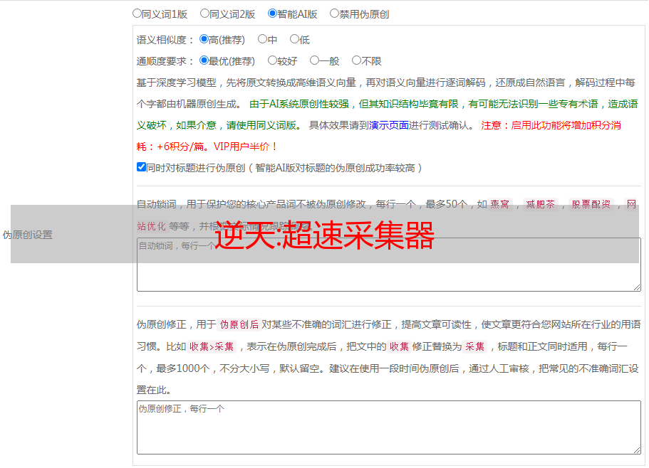 3、采集文章+翻译伪原创可以满足各领域站长朋友的文章需求。