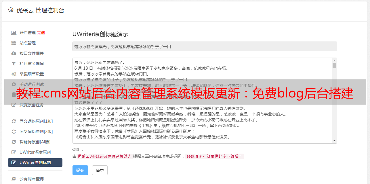 优采云 发布时间: 2022-09-24 09:13教程:cms网站后台内容管理系统模板更新:免费blog后台搭建