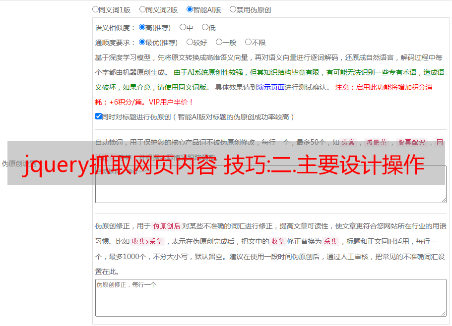优采云 发布时间: 2022-09-24 11:14jquery抓取网页内容 技巧:二.主要设计操作
