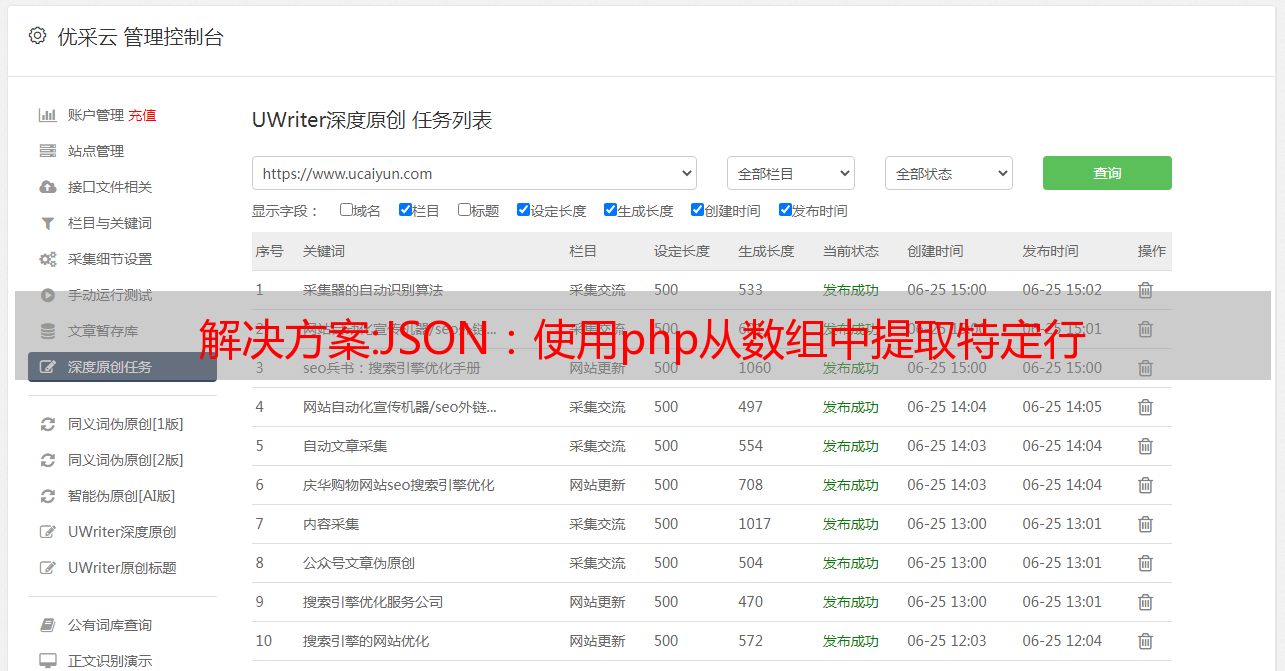 优采云 发布时间: 2022-09-24 18:09解决方案:JSON:使用php从数组中提取特定行