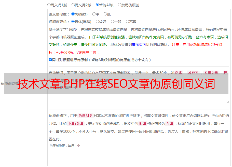 技术文章:PHP在线SEO文章伪原创同义词交换工具源码下载