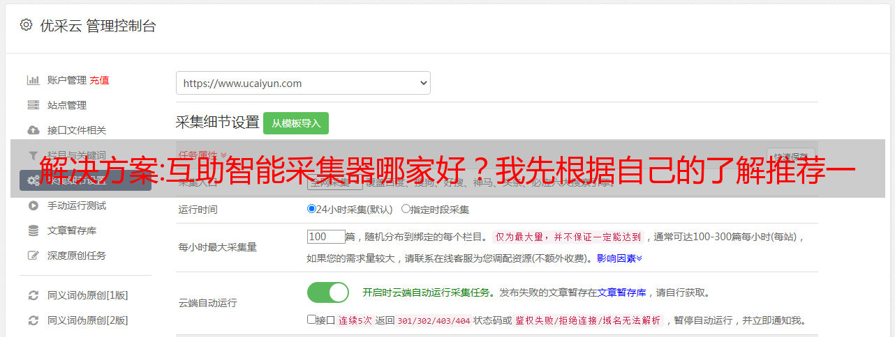 优采云 发布时间: 2022-09-25 11:12解决方案:互助智能采集器哪家好?我先根据自己的了解推荐一个吧