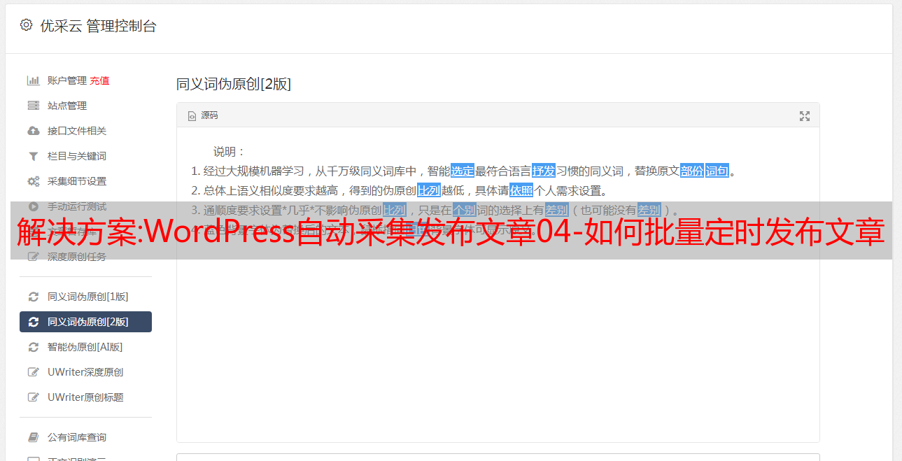 优采云 发布时间: 2022-09-25 17:14解决方案:WordPress自动采集发布文章04-如何批量定时发布文章