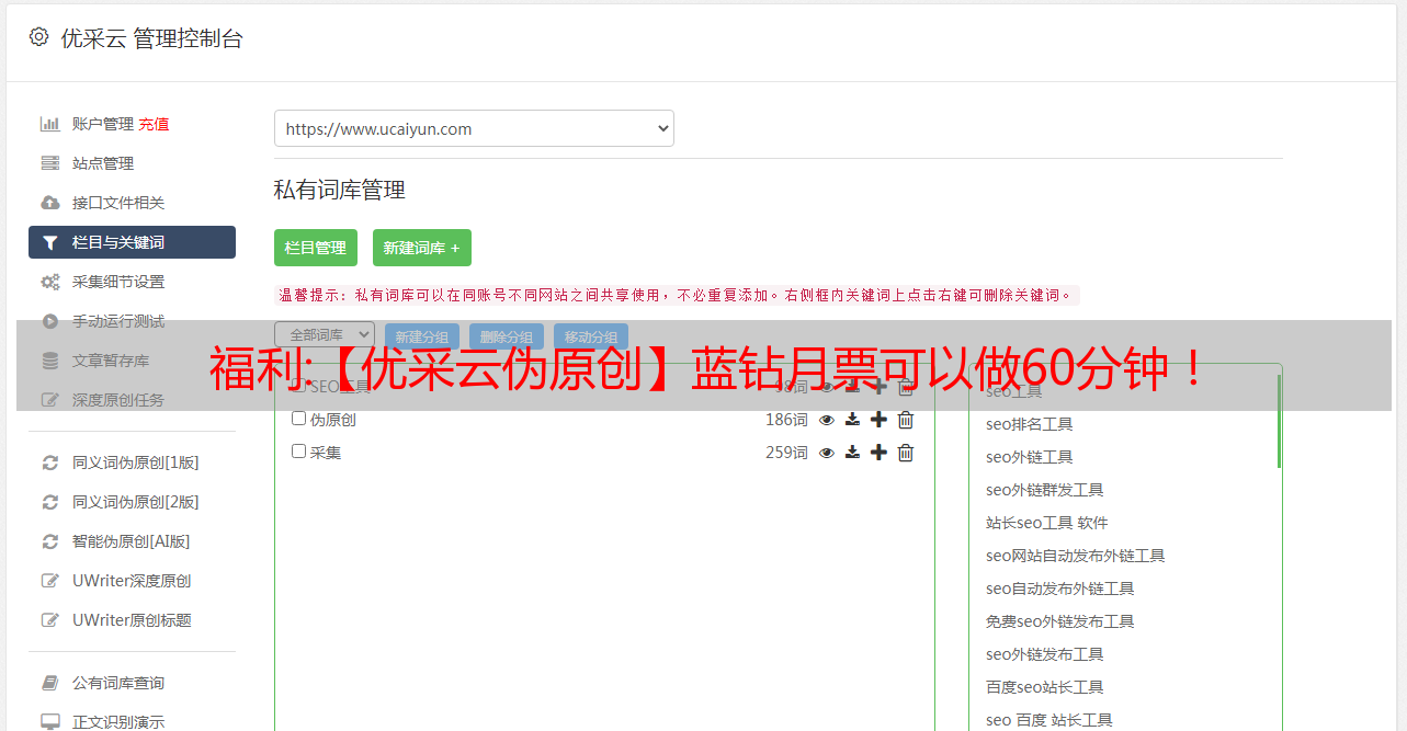福利:【优采云伪原创】蓝钻月票可以做60分钟!
