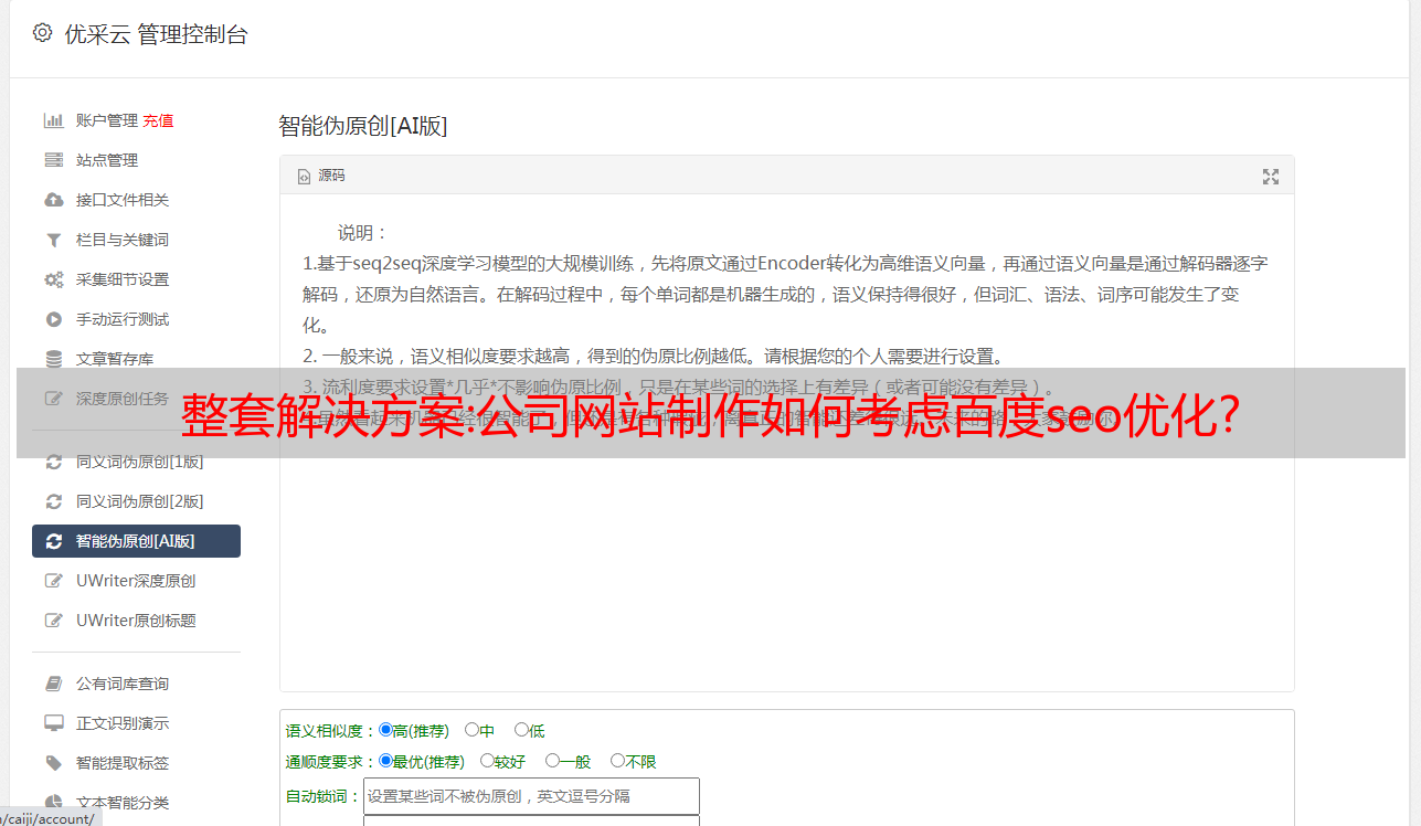 优采云 发布时间: 2022-09-25 23:16整套解决方案:公司网站制作如何考虑百度seo优化?