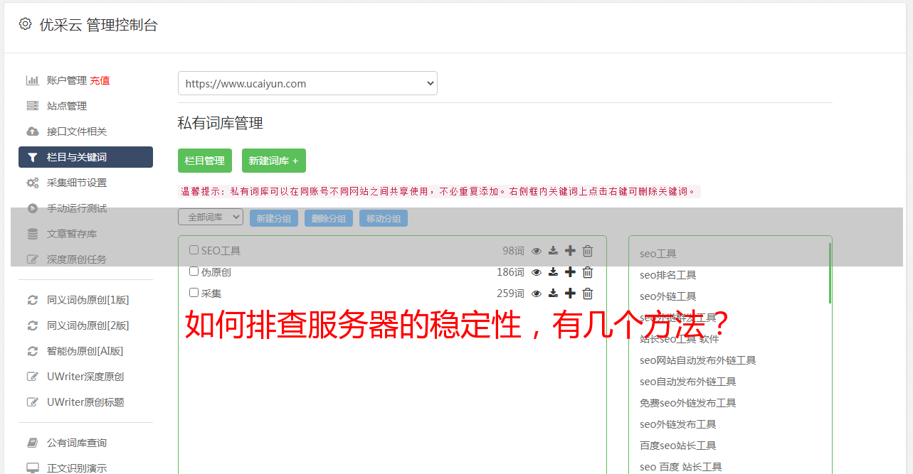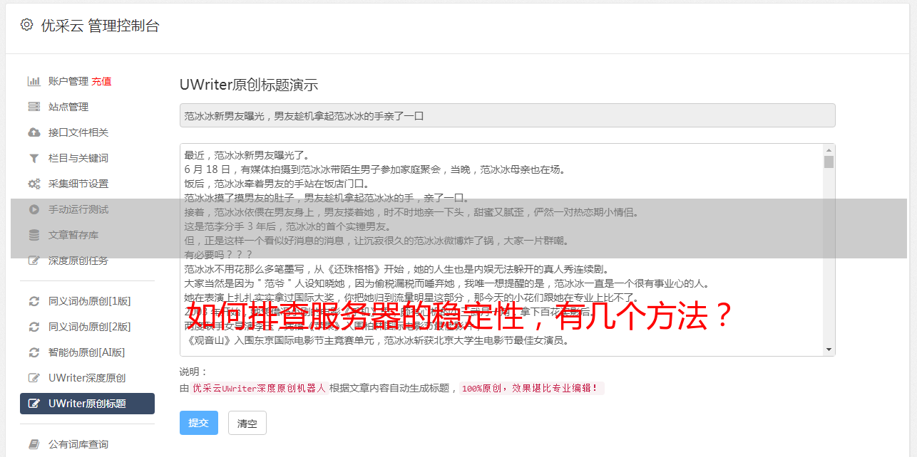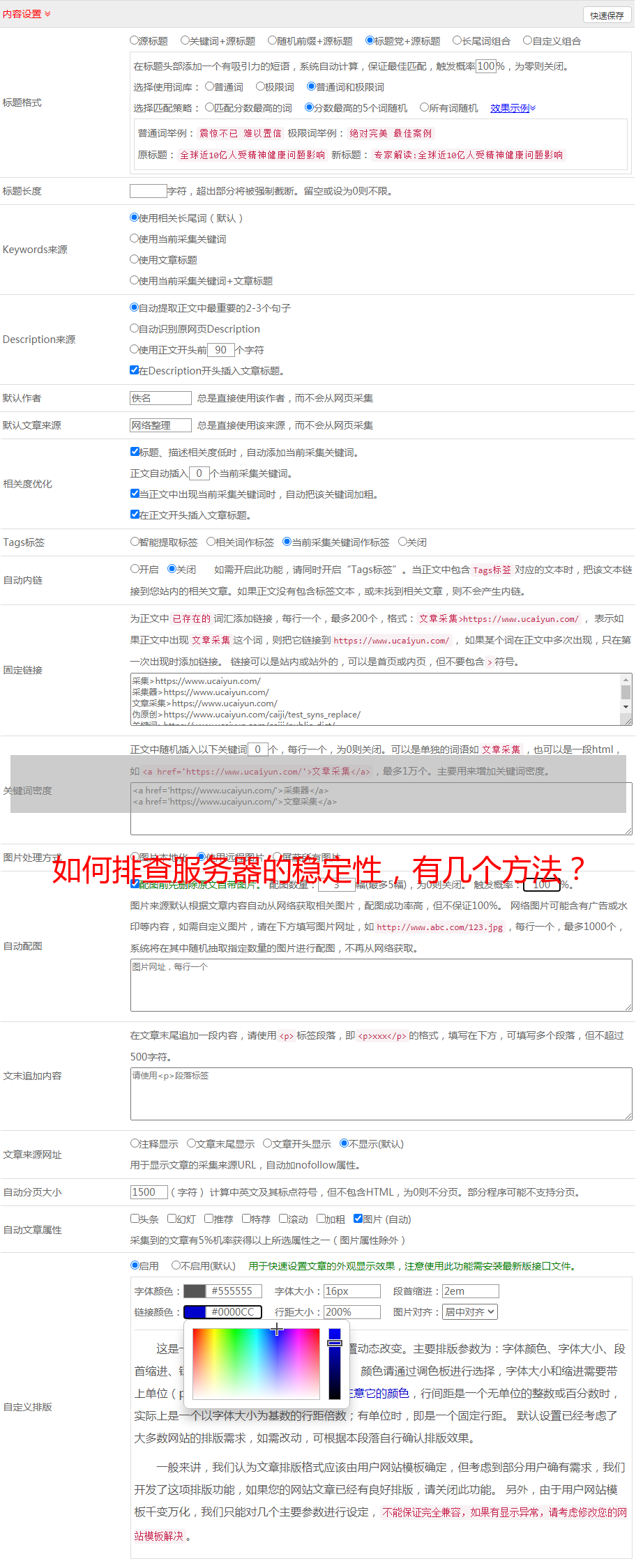 除速度外,还需要考虑服务器的稳定性。快速稳定的性能可以保证访问者和爬虫的正常访问。有几种检查服务器稳定性的方法,包括但不限于使用主页网站管理员平台的诊断工具和用户平台的网站速度测试工具。无论使用哪种方法,都必须确保购买或租用的服务器的速度稳定。 网站是国内用户使用的中文网站,不建议使用国外服务器。原因在于速度问题。通常情况下,家庭用户访问由外部服务器构建的站点的速度将相对较慢。