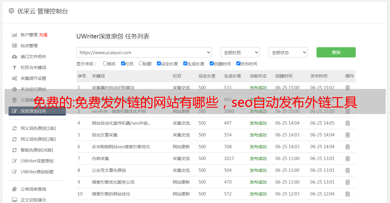 优采云 发布时间: 2022-09-28 01:08免费的:免费发外链的网站有哪些,seo自动发布外链工具