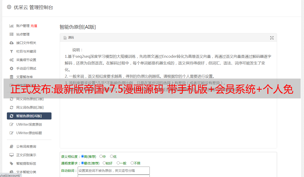 正式发布:最新版帝国v7.5*敏*感*词*源码 带手机版+会员系统+个人免签约支付