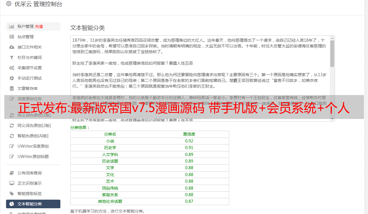 优采云 发布时间: 2022-09-28 02:09正式发布:最新版帝国v7.5*敏*感*词*源码 带手机版+会员系统+个人免签约支付