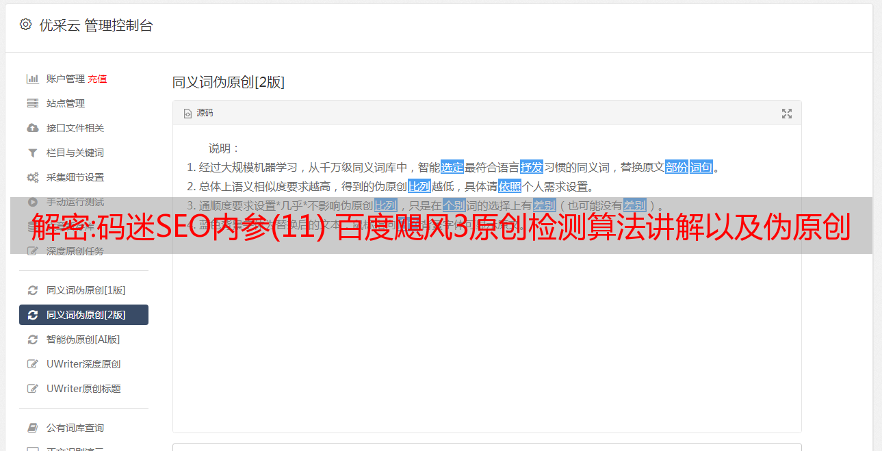 优采云 发布时间: 2022-09-28 02:14解密:码迷SEO内参(11) 百度飓风3原创检测算法讲解以及伪原创检测工具