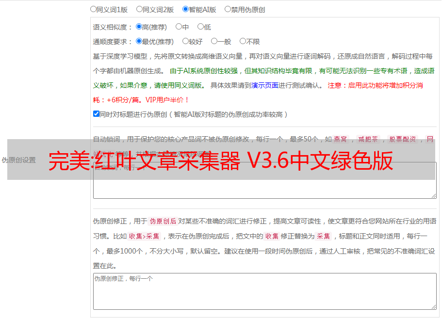 优采云 发布时间: 2022-09-28 03:18完美:红叶文章采集器 V3.6中文绿色版