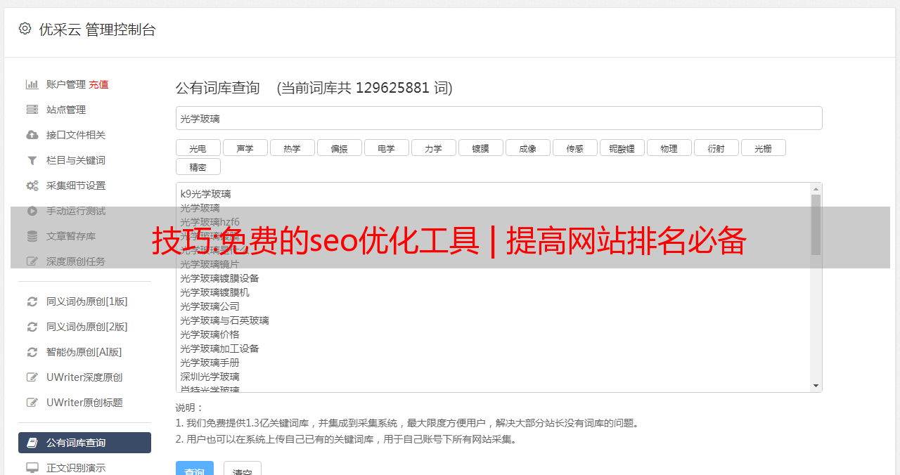 优采云 发布时间: 2022-09-28 04:08技巧:免费的seo优化工具 | 提高网站排名必备
