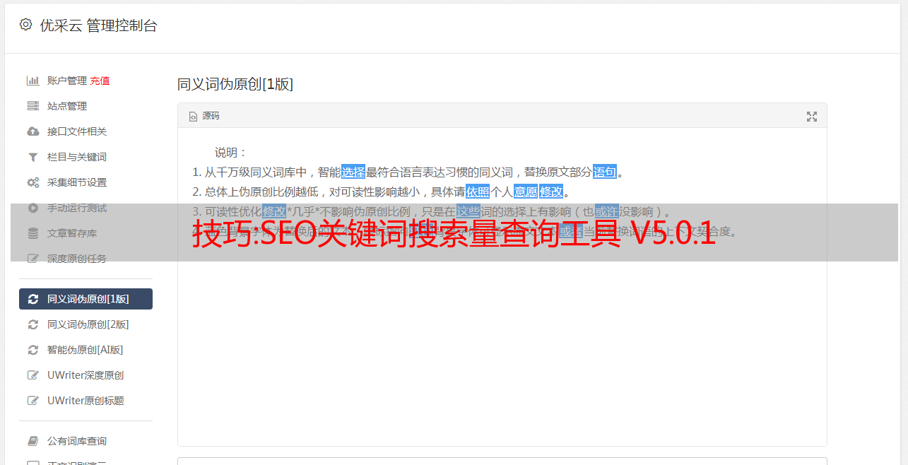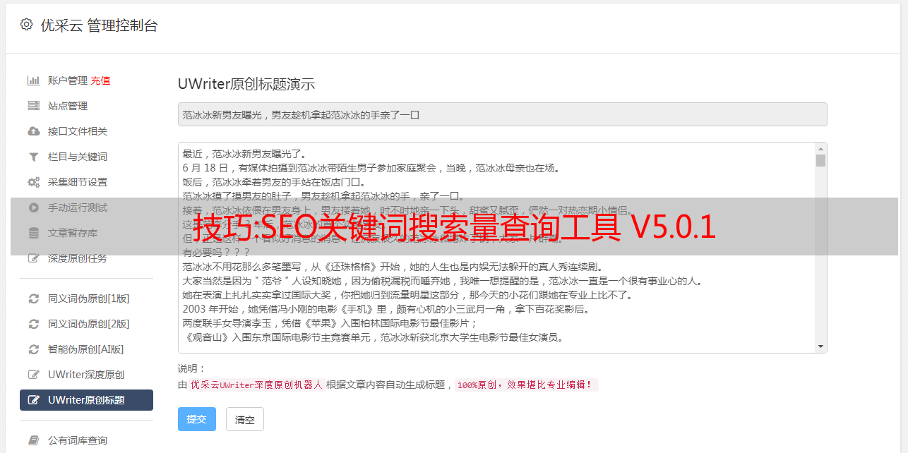 优采云 发布时间: 2022-09-28 15:28技巧:SEO关键词搜索量查询工具 V5.0.1