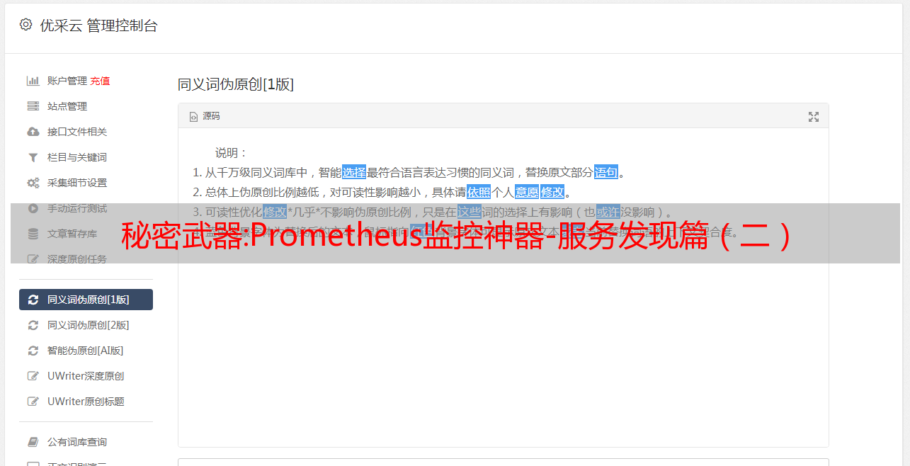 优采云 发布时间: 2022-09-29 01:12秘密武器:Prometheus监控神器-服务发现篇(二)