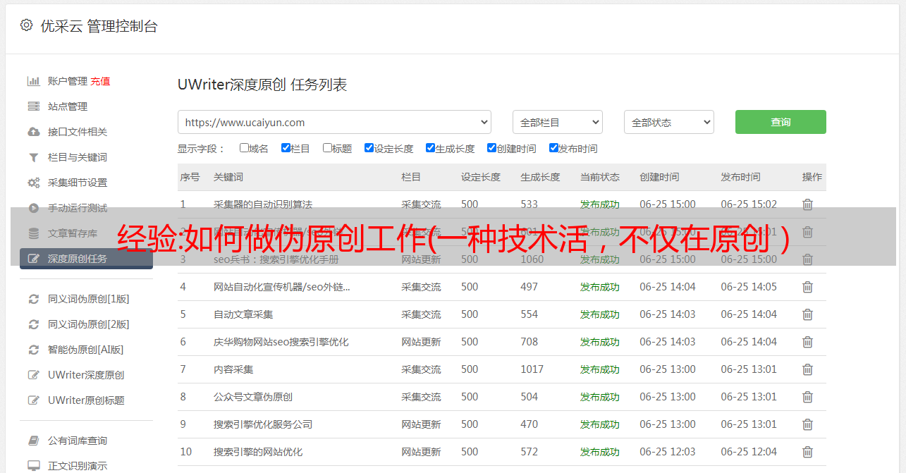 优采云 发布时间: 2022-09-29 06:10经验:如何做伪原创工作(一种技术活,不仅在原创)
