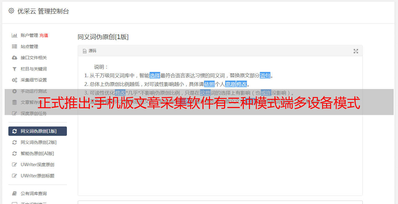 正式推出:手机版文章采集软件有三种模式端多设备模式