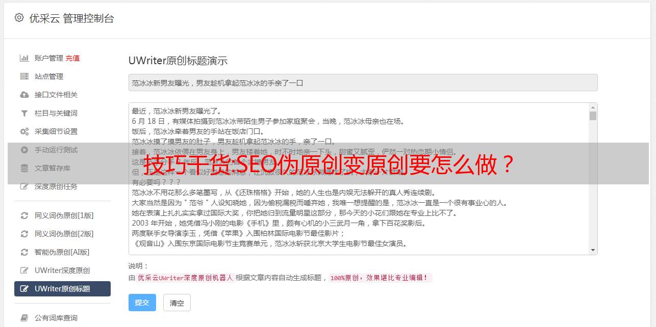 优采云 发布时间: 2022-09-29 15:12技巧干货:SEO伪原创变原创要怎么做?