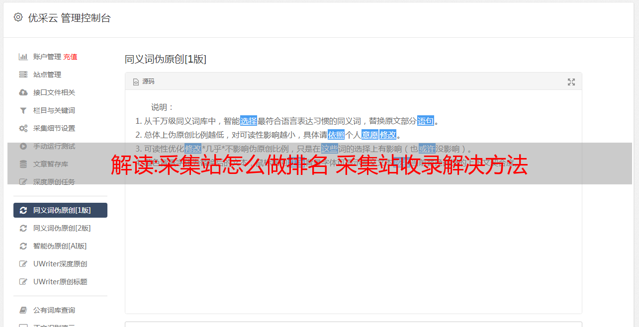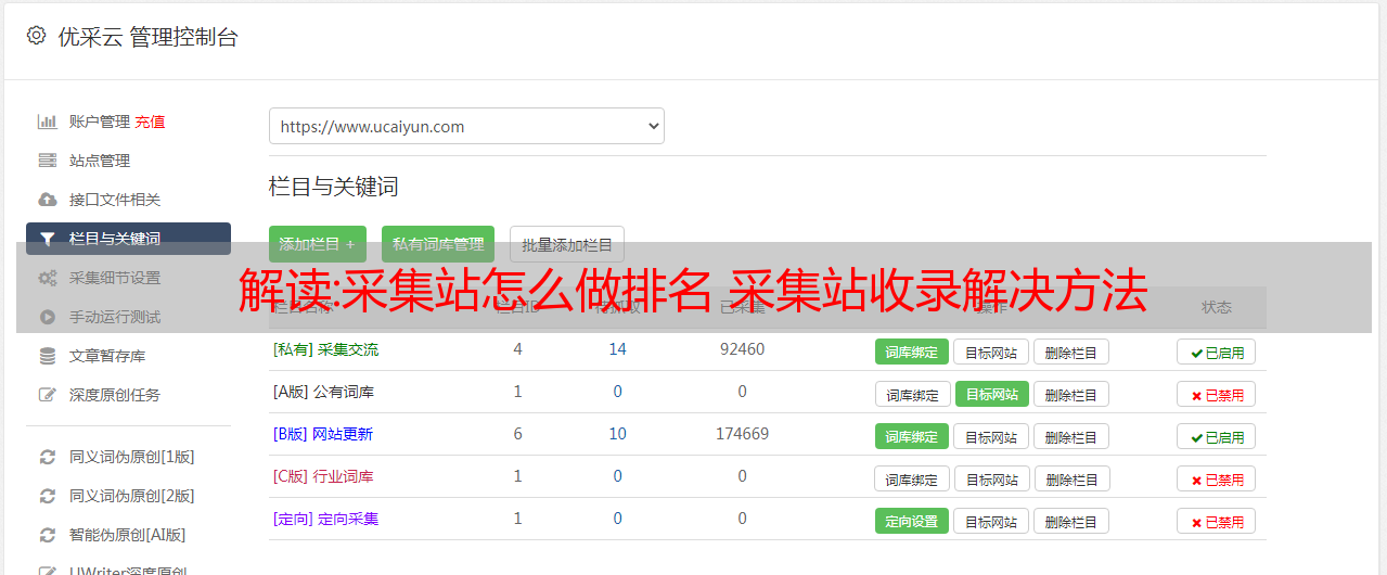优采云 发布时间: 2022-09-30 02:22解读:采集站怎么做排名 采集站收录解决方法