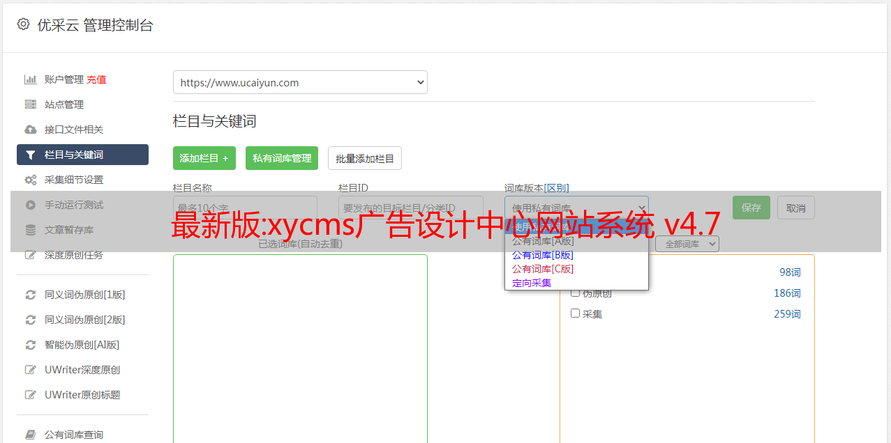 优采云 发布时间: 2022-09-30 15:19最新版:xycms广告设计中心网站系统 v4.7