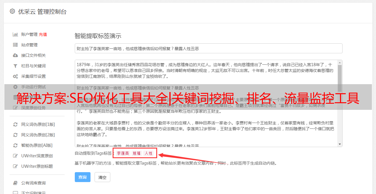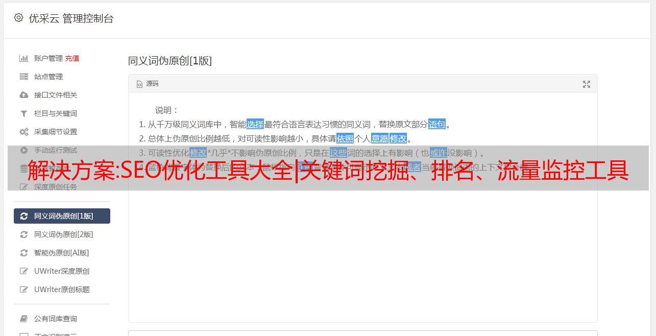优采云 发布时间: 2022-09-30 19:08解决方案:SEO优化工具大全|关键词挖掘、排名、流量监控工具