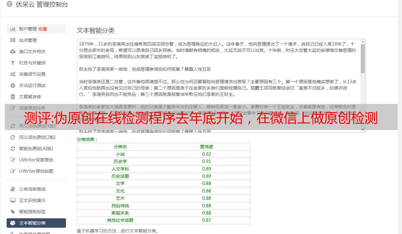 测评:伪原创在线检测程序去年底开始,在微信上做原创检测