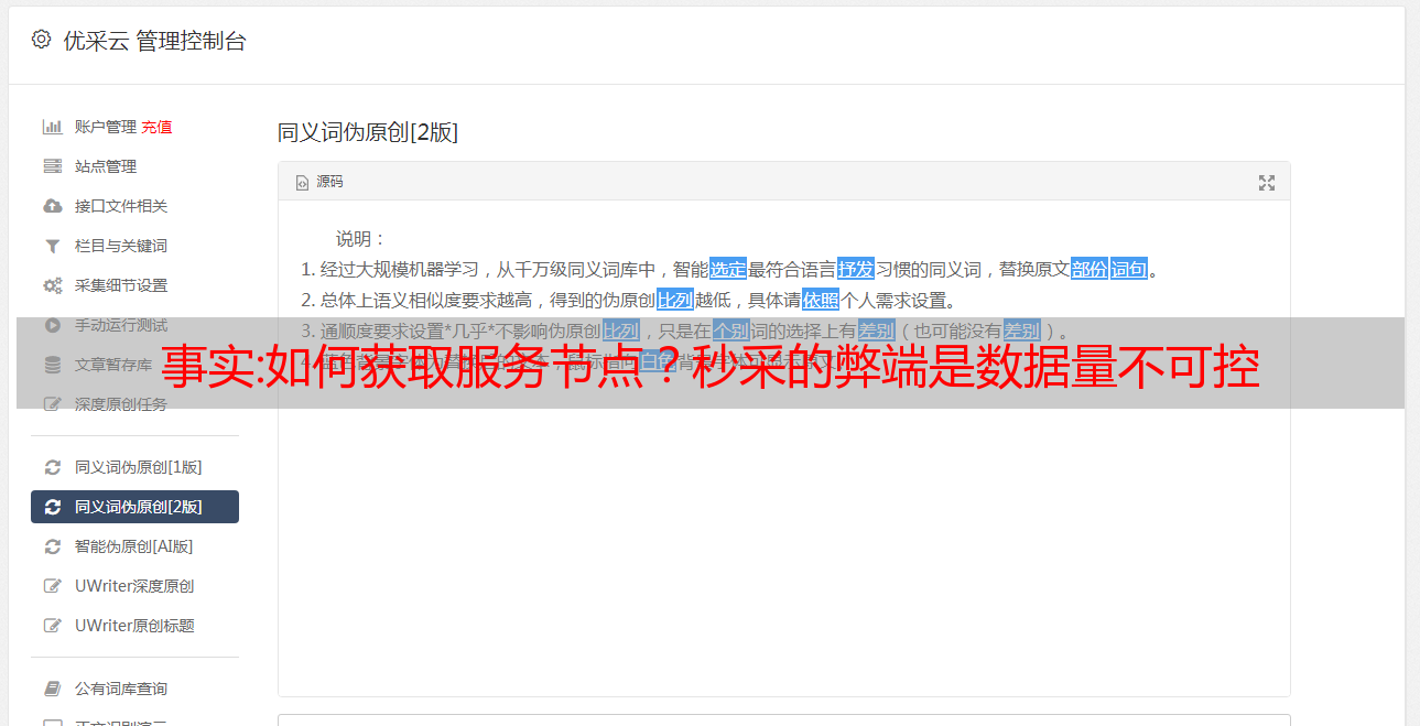 优采云 发布时间: 2022-10-01 12:07事实:如何获取服务节点?秒采的弊端是数据量不可控