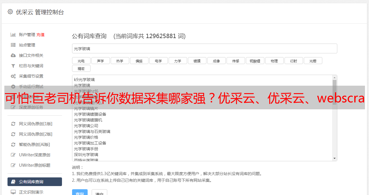 如果我要推荐最通用的采集器,我推荐的是优采云(没有*敏*感*词*,我几乎不使用优采云)。在知乎上,在微信公众号上,很多人推荐webscraper,无非就是学习门槛低、功能强大、免费三大特点。学习门槛低,功能强大不成立。免费确实是免费的,优采云、优采云采集的免费版本也能满足大部分人的需求。如果要使用付费版,webscraper确实没有一些增值收费功能