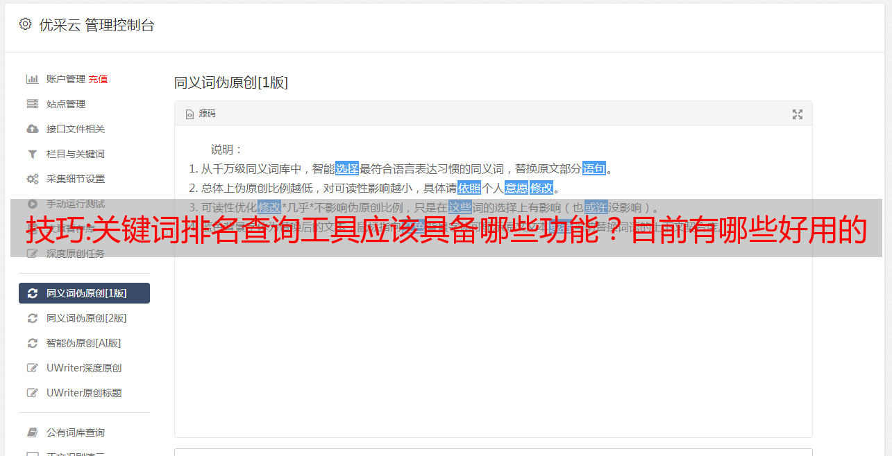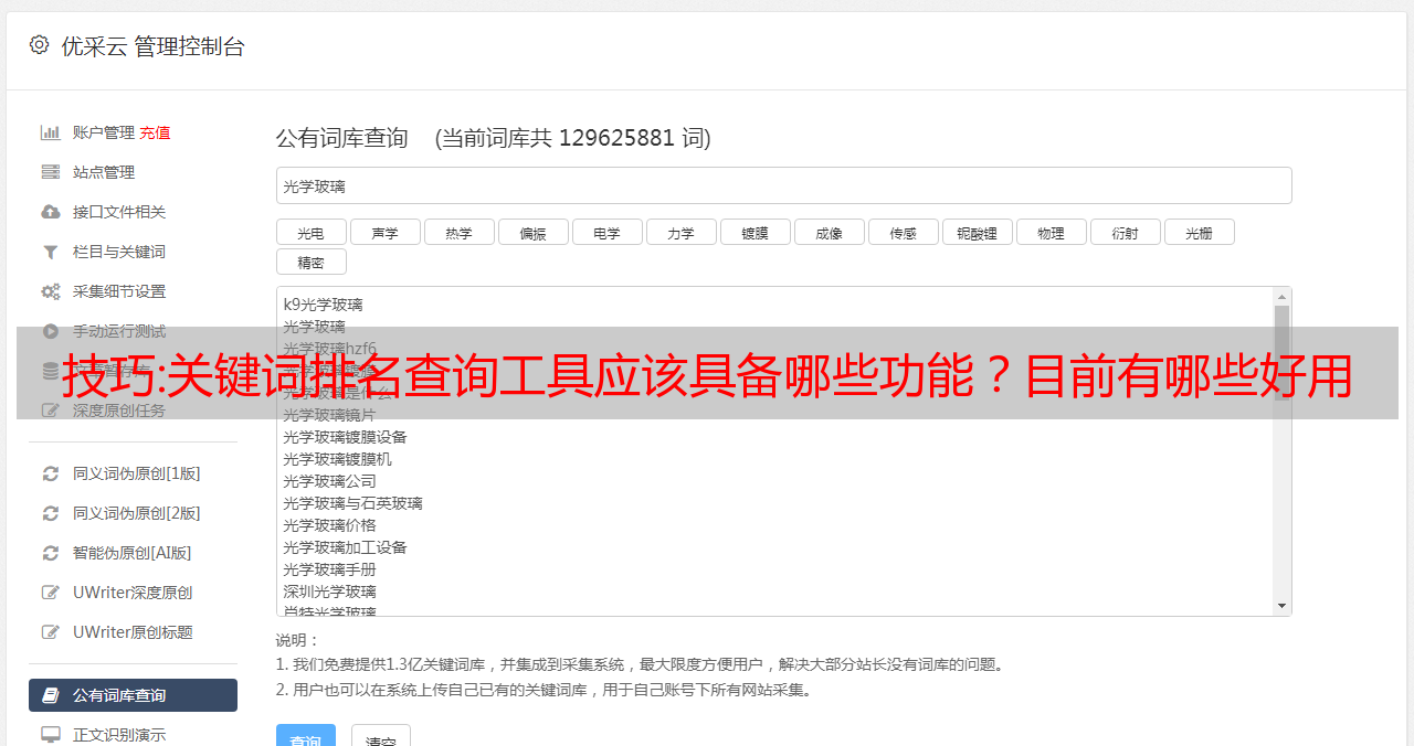 优采云 发布时间: 2022-10-02 00:08技巧:关键词排名查询工具应该具备哪些功能?目前有哪些好用的排名查询工具?