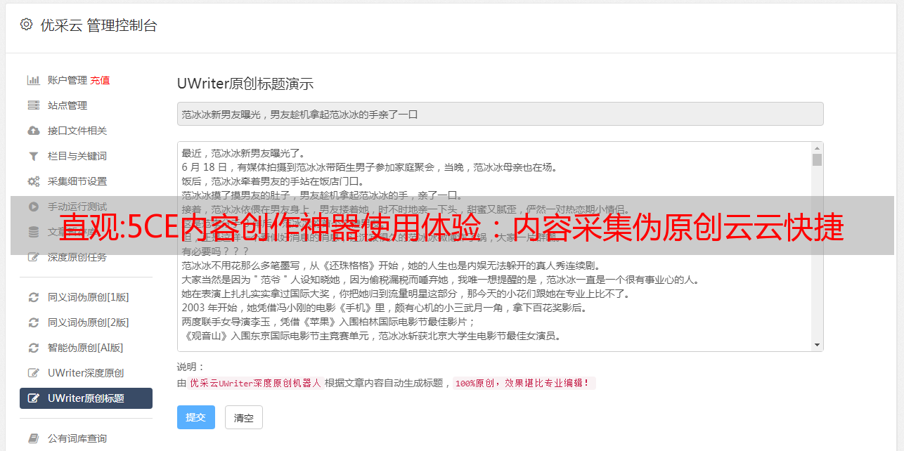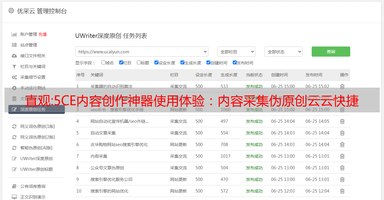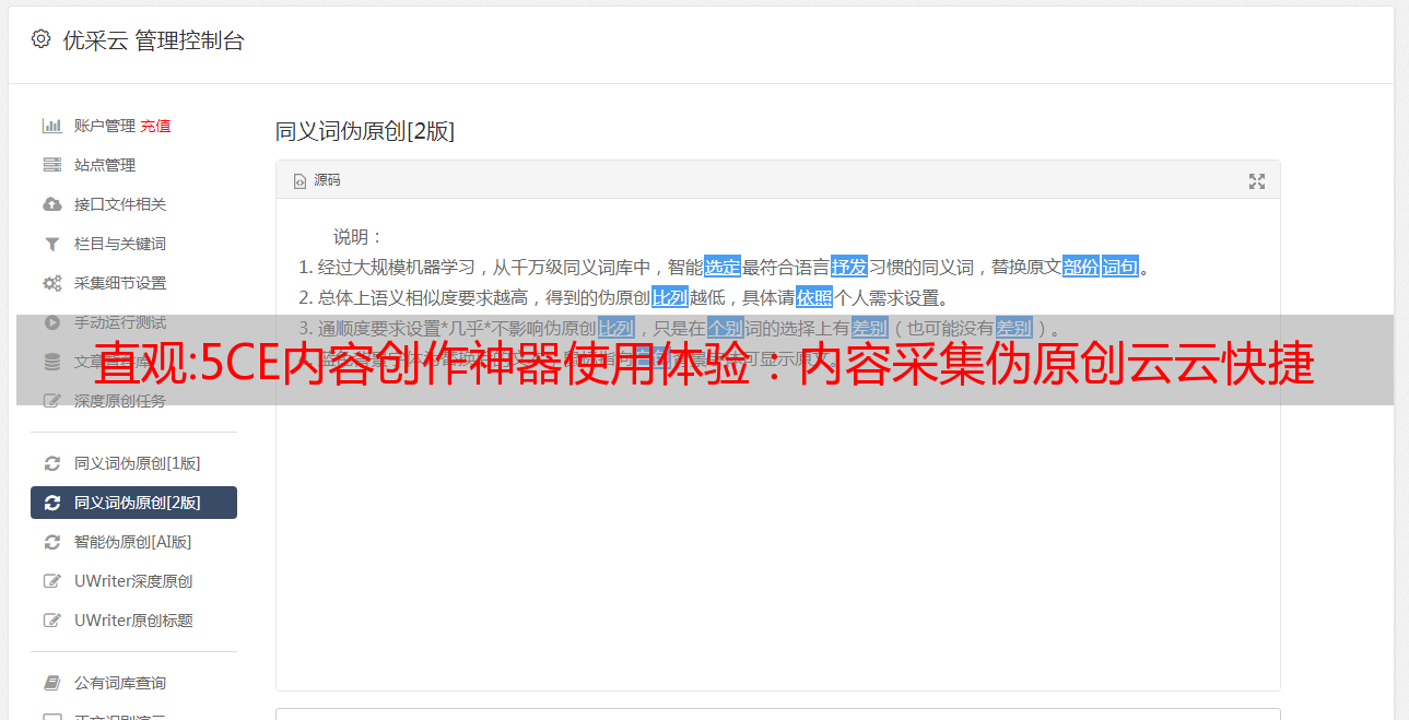 直观:5CE内容创作神器使用体验:内容采集伪原创云云快捷