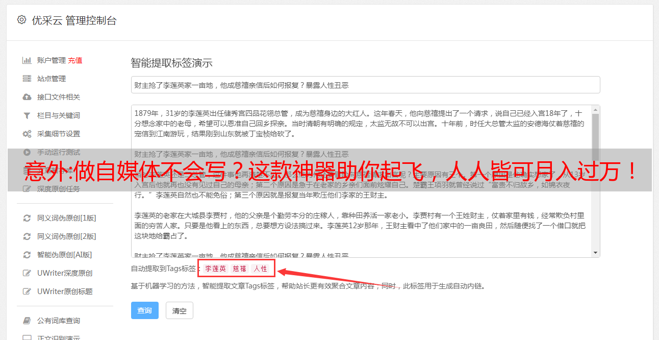 优采云 发布时间: 2022-10-02 19:13意外:做自媒体不会写?这款神器助你起飞,人人皆可月入过万!