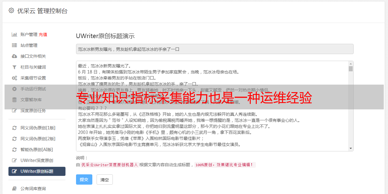 优采云 发布时间: 2022-10-02 20:13专业知识:指标采集能力也是一种运维经验