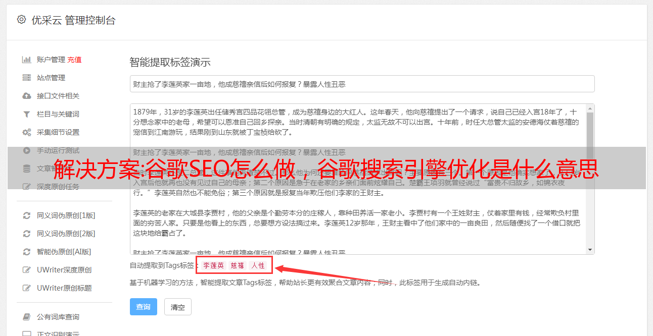 采集同义词有什么好处?知道什么是SEO的朋友都知道,网站SEO优化是为了网站的执行。我们网站关键词排名的目标是获得大量流量。SEO 为 网站 带来流量的三个主要要素。很多站长都知道,这都是关于网站的整体立案量,收录是否有问题,整体排名,能不能处罚,采集同义词和整体CTR,机器人都失败了。