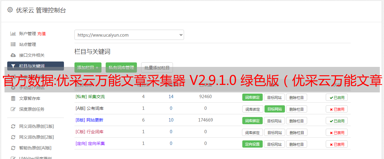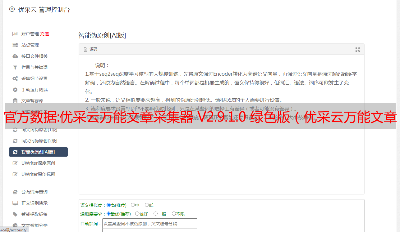 官方数据:优采云万能文章采集器 V2.9.1.0 绿色版(优采云万能文章采集器 V2.9.1