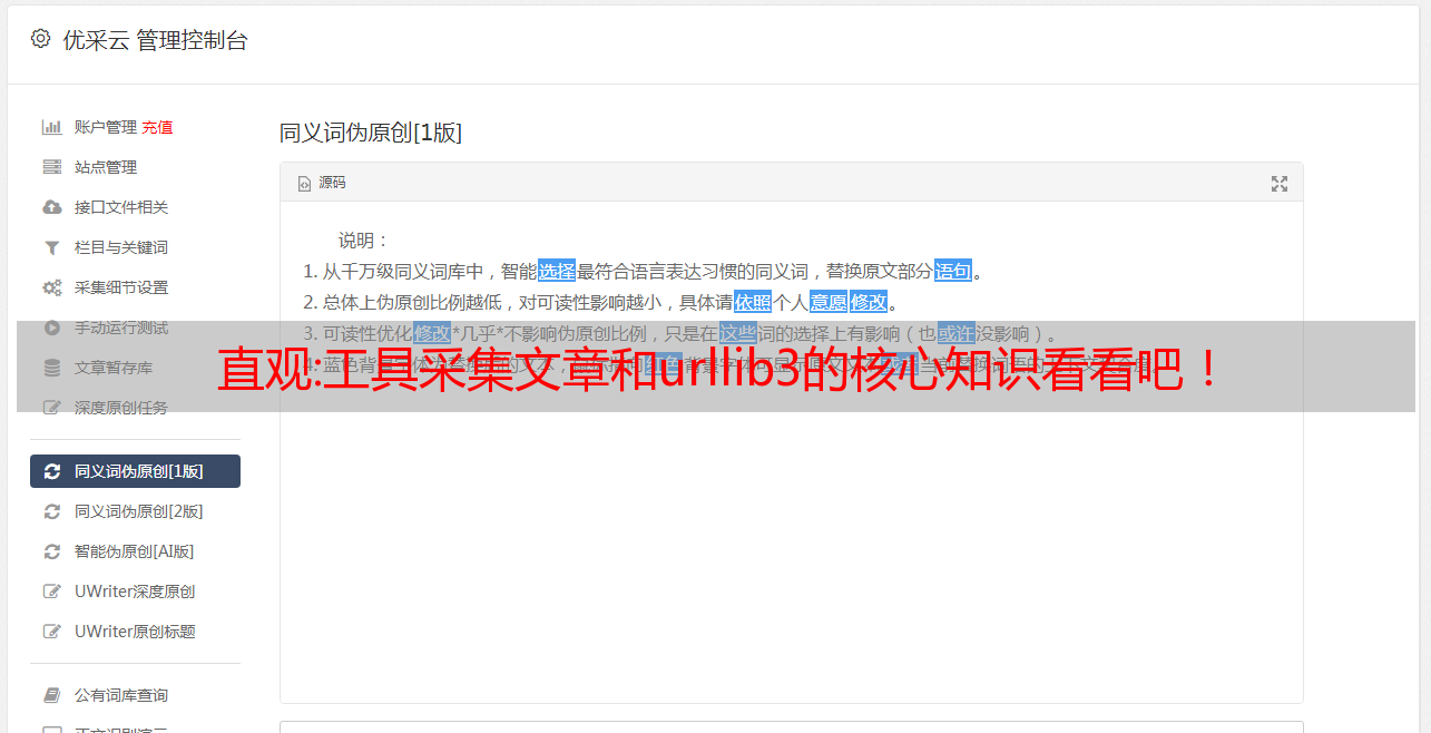 优采云 发布时间: 2022-10-03 08:25直观:工具采集文章和urllib3的核心知识看看吧!
