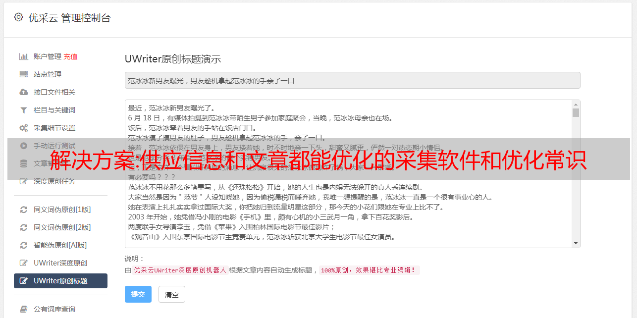 解决方案:供应信息和文章都能优化的采集软件和优化常识