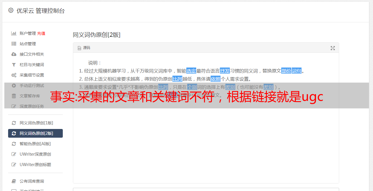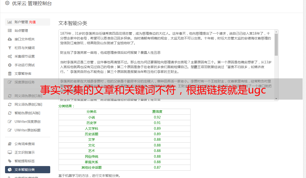 事实:采集的文章和关键词不符,根据链接就是ugc
