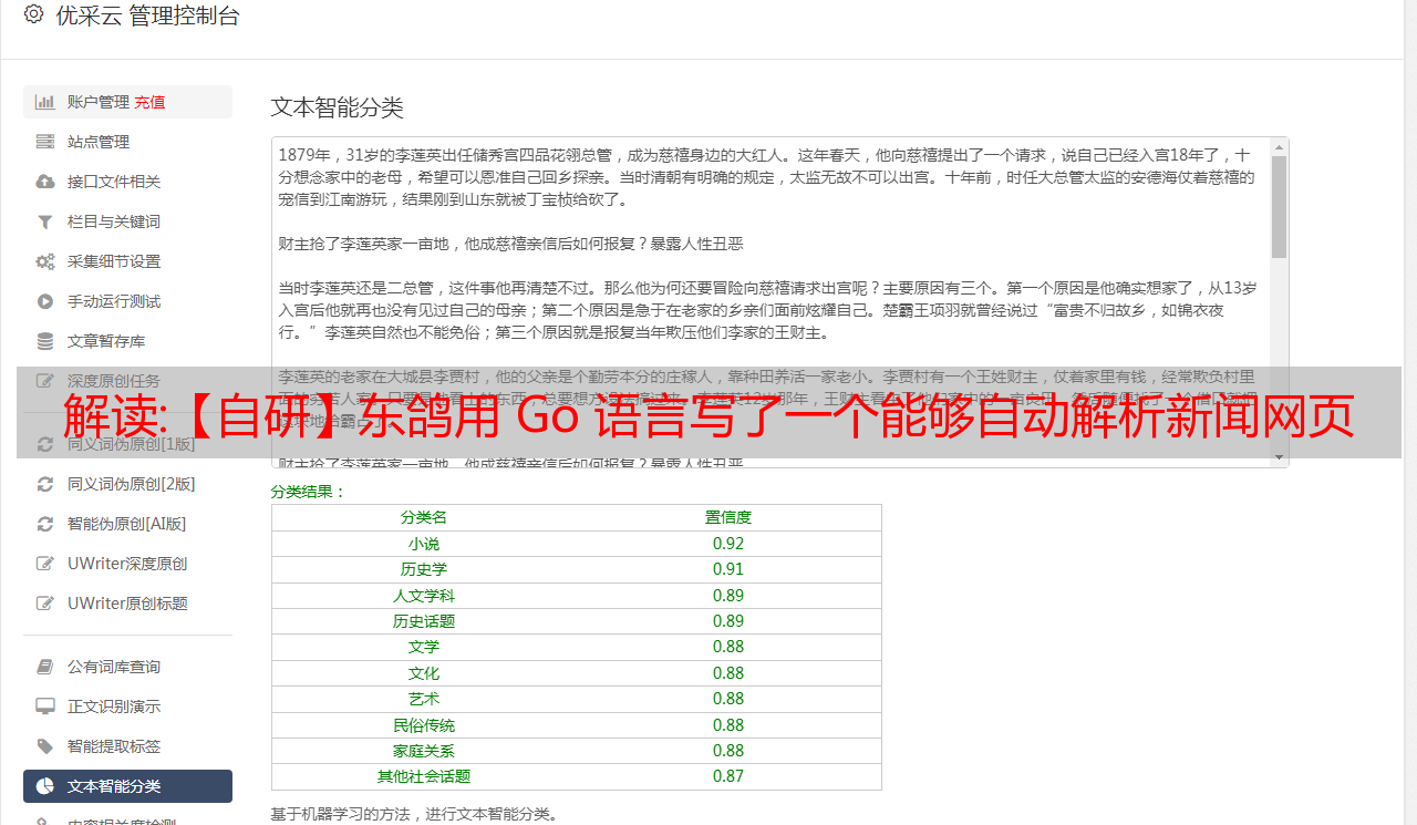 优采云 发布时间: 2022-10-04 11:17解读:【自研】东鸽用 Go 语言写了一个能够自动解析新闻网页的算法