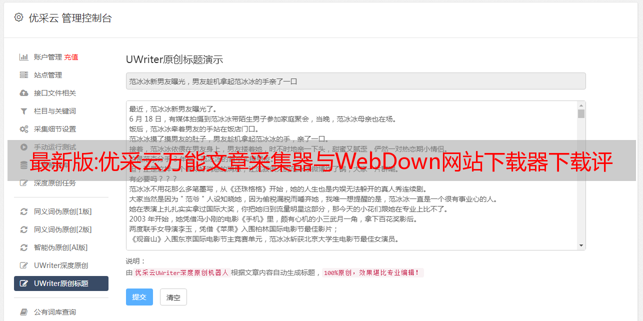 最新版:优采云万能文章采集器与WebDown网站下载器下载评论软件详情对比