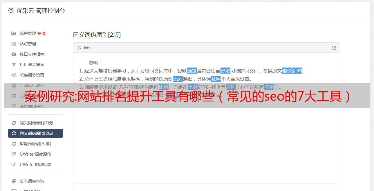优采云 发布时间: 2022-10-04 17:14案例研究:网站排名提升工具有哪些(常见的seo的7大工具)