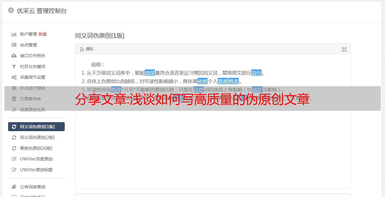 优采云 发布时间: 2022-10-04 19:12分享文章:浅谈如何写高质量的伪原创文章