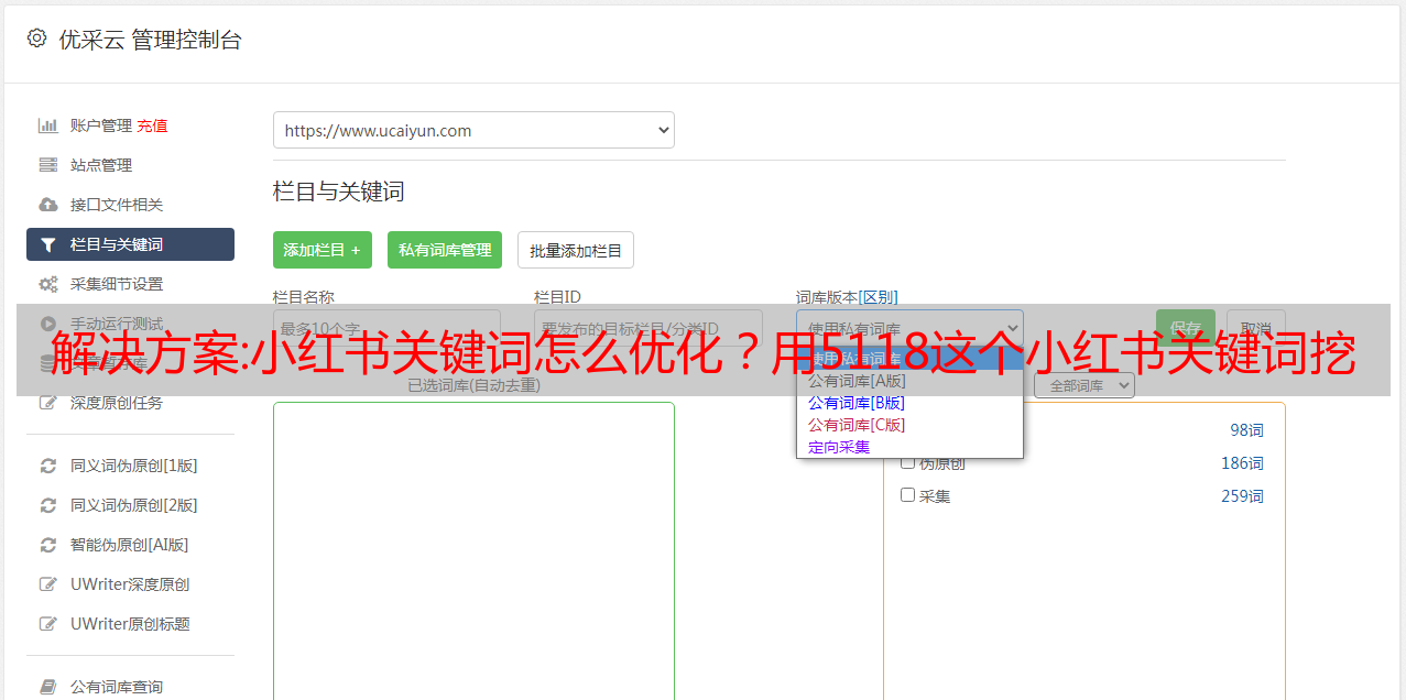 优采云 发布时间: 2022-10-06 13:42解决方案:小红书关键词怎么优化?用5118这个小红书关键词挖掘优化排名工具