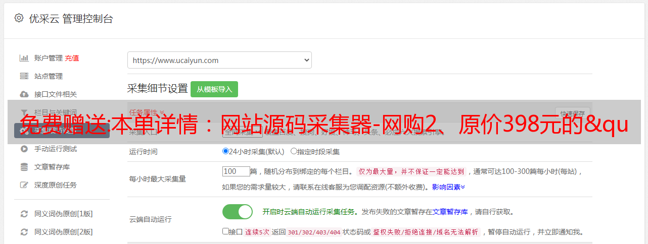 免费赠送:本单详情:网站源码采集器-网购2、原价398元的"网站源码采
