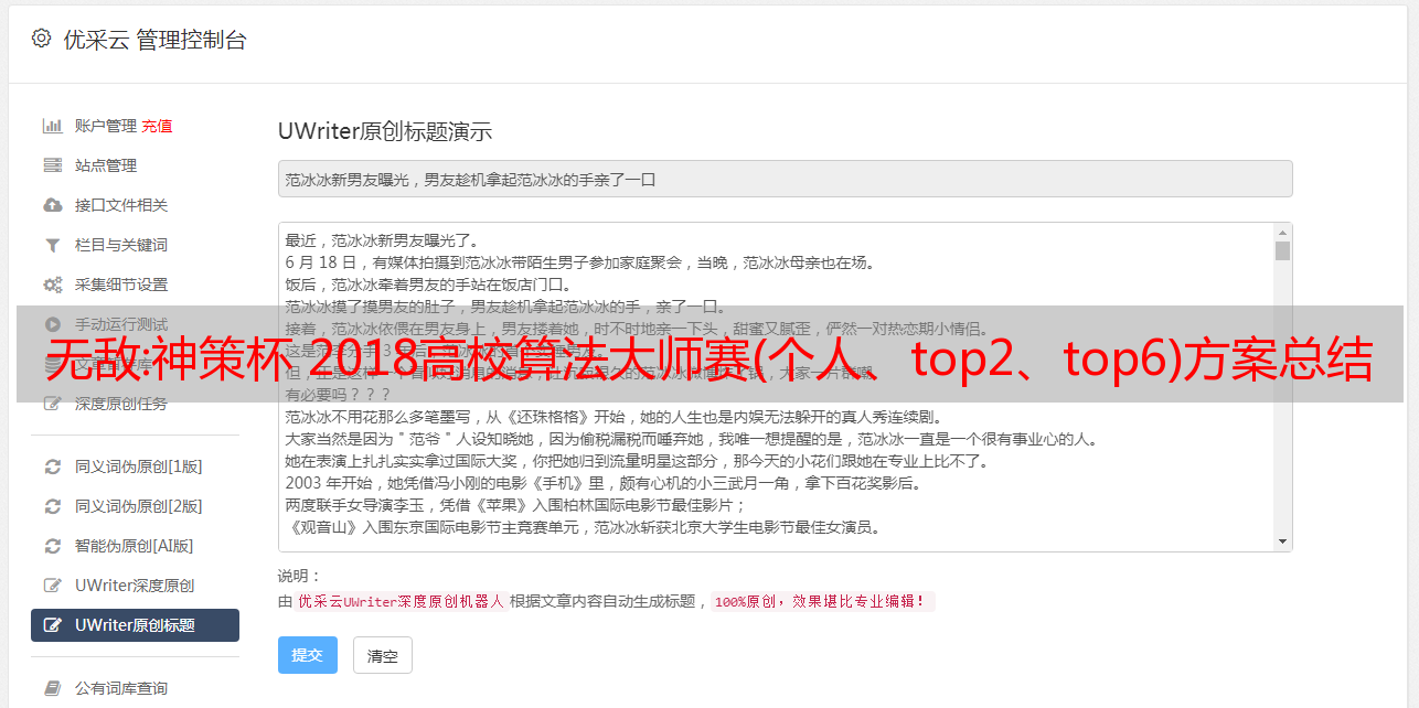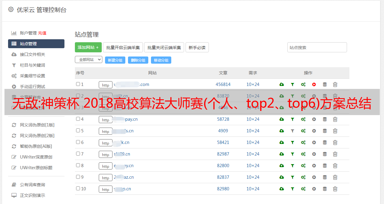 优采云 发布时间: 2022-10-07 02:07无敌:神策杯 2018高校算法大师赛(个人、top2、top6)方案总结