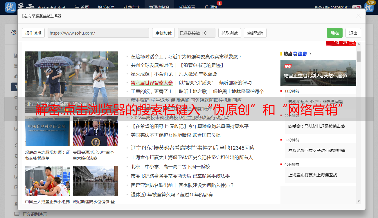 优采云 发布时间: 2022-10-07 18:10解密:点击浏览器的搜索栏键入“伪原创”和“网络营销”