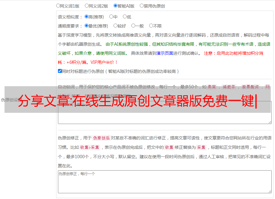 伪原创范围:伪原创仅内容或标题+内容一起伪原创