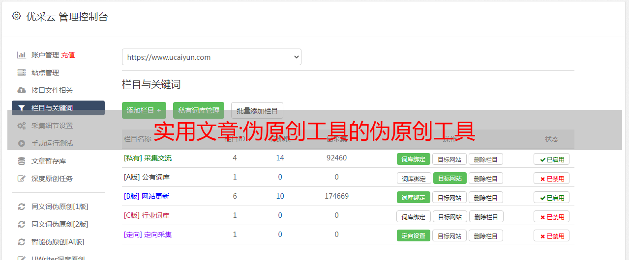 2、优采云采集器的支持已重新开发;