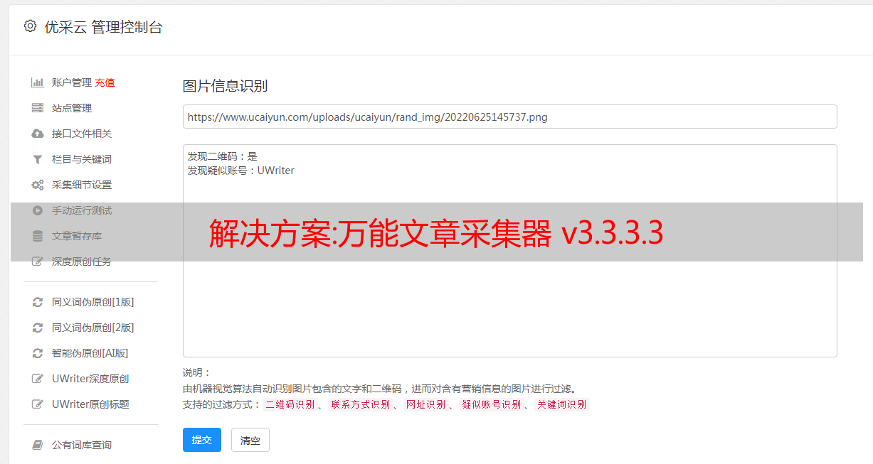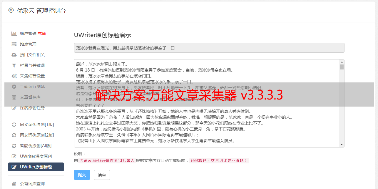 优采云 发布时间: 2022-10-08 02:31解决方案:万能文章采集器 v3.3.3.3