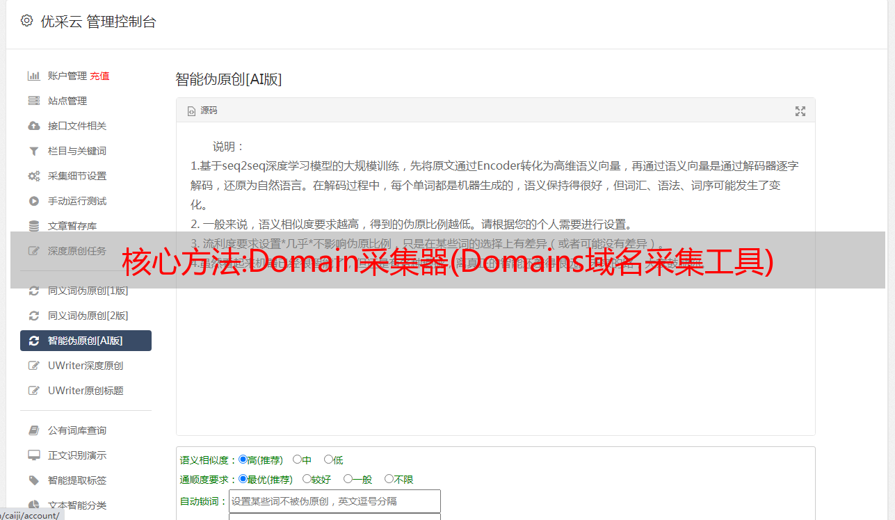优采云 发布时间: 2022-10-08 08:26核心方法:Domain采集器(Domains域名采集工具)